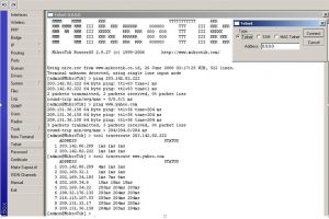 7. Untuk melakukan percobaan Ping dan Traceroute dapat dilakukan melalui program New Terminal, Telnet atau Tools > Ping dari Mikrotik.
