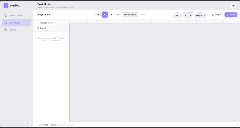 kemudian saya mau buat musik dibuat lebih kompleks lagi. Dimana ada fitur user bisa mengubah nada per bar jadi bentuknya seperti di gambar, dan saya mau sound alat musiknya lebih kompleks dan seperti asli karena digunakan untuk profesional dan terdapat fitur mastering di buat musik, dan efek saya memberi refrensi dari bandlab, cubase, fl studio