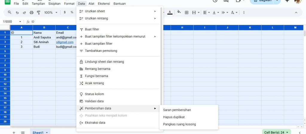 3. Langkah-Langkah Data Cleaning & Preparation di Google Sheets