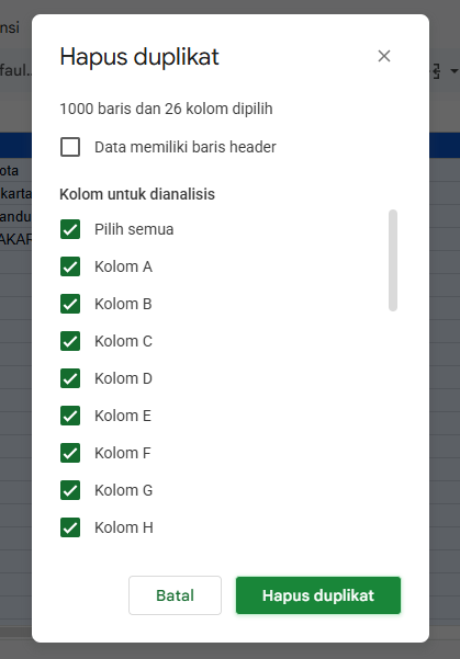 Langkah 2: Menghapus Data Duplikat