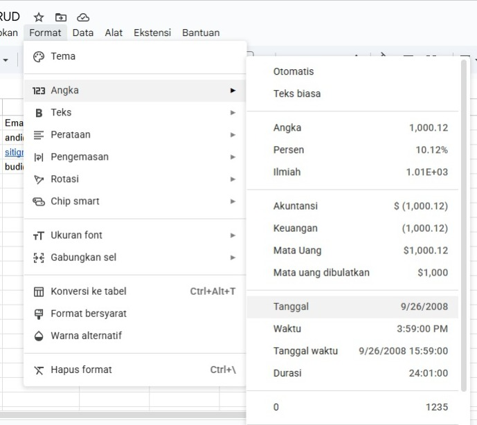 - Langkahnya = Blok kolom tanggal, Klik menu Format, Pilih Angka, dan Pilih Tanggal
