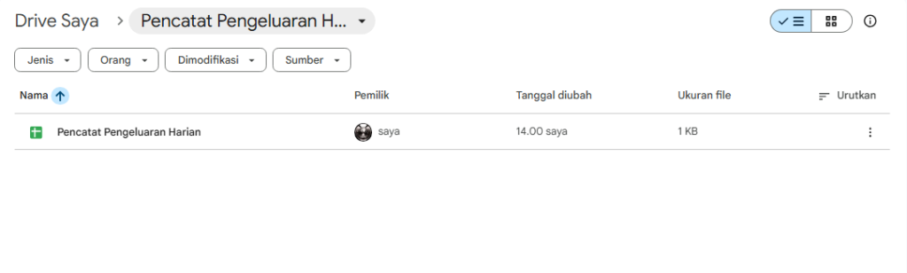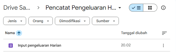 - Pilih spreadsheet “Pencatat Pengeluaran Harian” yang sudah kita buat