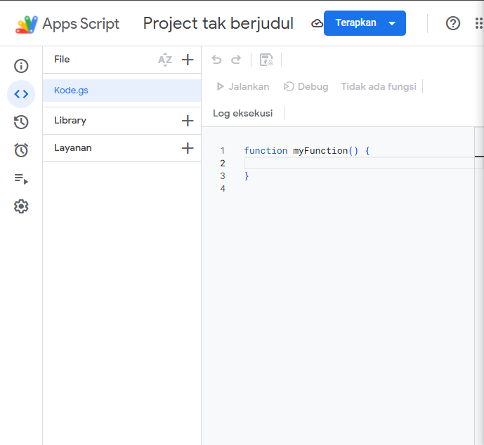 Hapus kode default myFunction() dan ganti dengan kode berikut: