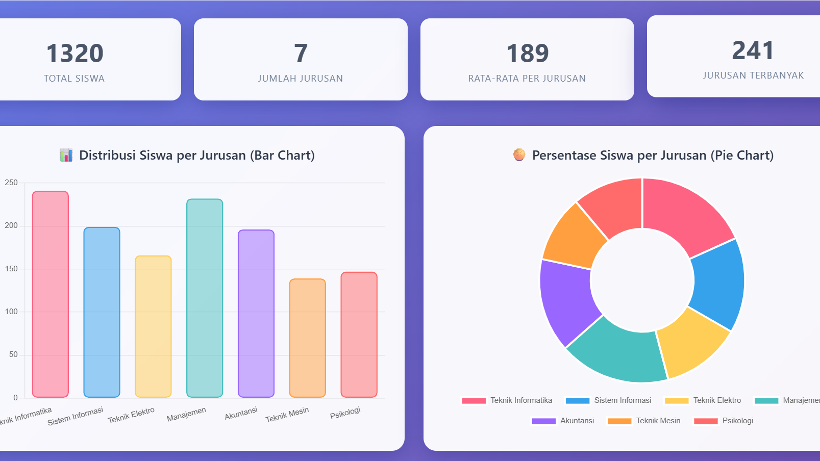 Dengan mengikuti tutorial ini, kamu sudah berhasil membuat dashboard statistik sederhana dengan: