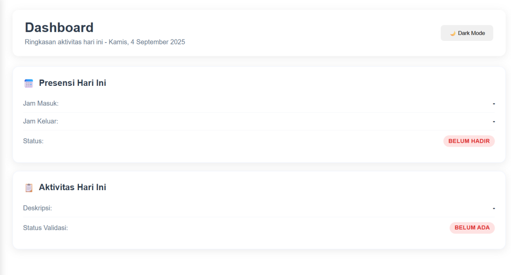 Menambahkan fitur dark mode pada sistem absensi web adalah langkah kecil tapi berdampak besar.