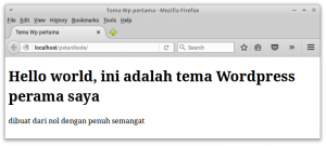 <h1>Hello world, ini adalah tema WordPress perama saya</h1>