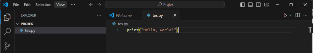 Buat file dengan ekstensi .py, lalu tulis kode sederhana seperti print("Hello, World!").