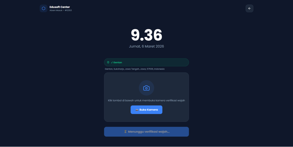 • Pendeteksi & Verifikasi Wajah AI (face-api.js): Memastikan karyawan yang absen adalah orang yang benar-benar terdaftar di dalam sistem melalui pencocokan wajah.