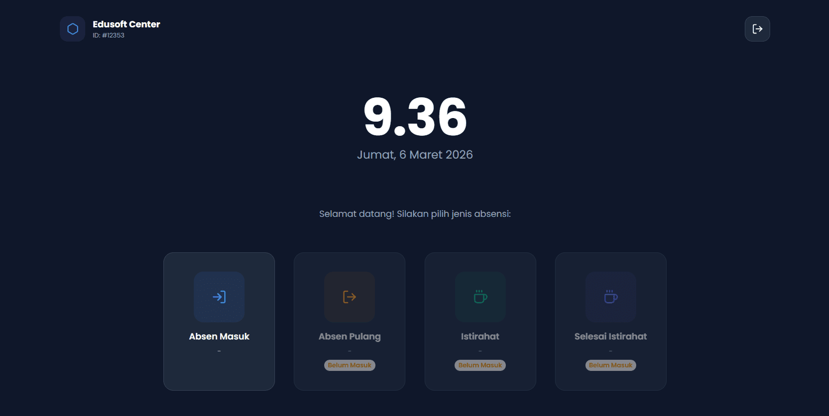 • Absen Masuk โ€” mencatat jam kedatangan