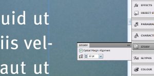 Hal terakhir yang ingin Anda lakukan adalah setting kecil di InDesign Story palette: Optical Margin Alignment. Ini mendorong tanda hubung, tanda kutip dan berbagai karakter seperti W dan A di luar teks. Hal ini meningkatkan tampilan tepi. Klik pada bingkai teks, aktifkan Optical Margin Alignment dan set nilai ke ukuran teks tubuh Anda.