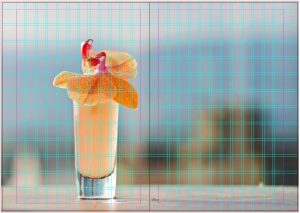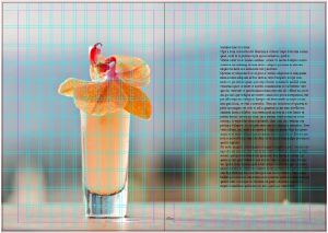 Pergi ke halaman 2-3 dan menempatkan foto Anda di ruang bleed sehingga penyebaran seluruh ditutupi. Pindahkan foto di bingkai sehingga subjek berada dalam batas halaman pertama dan bagian atas koktail berada di tepi barisan grid.
