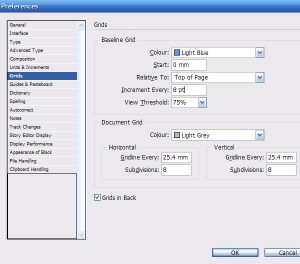 Untuk membuat teks kita terlihat baik kita perlu mengatur baseline grid. Pergi ke preferensi > Grids dan set kenaikan setiap ke 8 pt. Dalam tutorial ini kita akan menggunakan ukuran teks 12 poin dan terkemuka 16 poin. Sebuah grid dasar dari 8 pts, yang setengah terdepan, memberikan fleksibilitas karena kita juga dapat menggunakannya untuk ukuran teks yang lebih kecil.